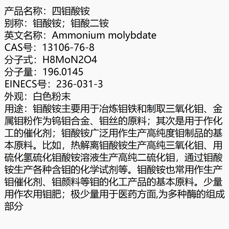 四钼酸铵 12207-64-6 用做石油工业及人造羊毛业的催化剂