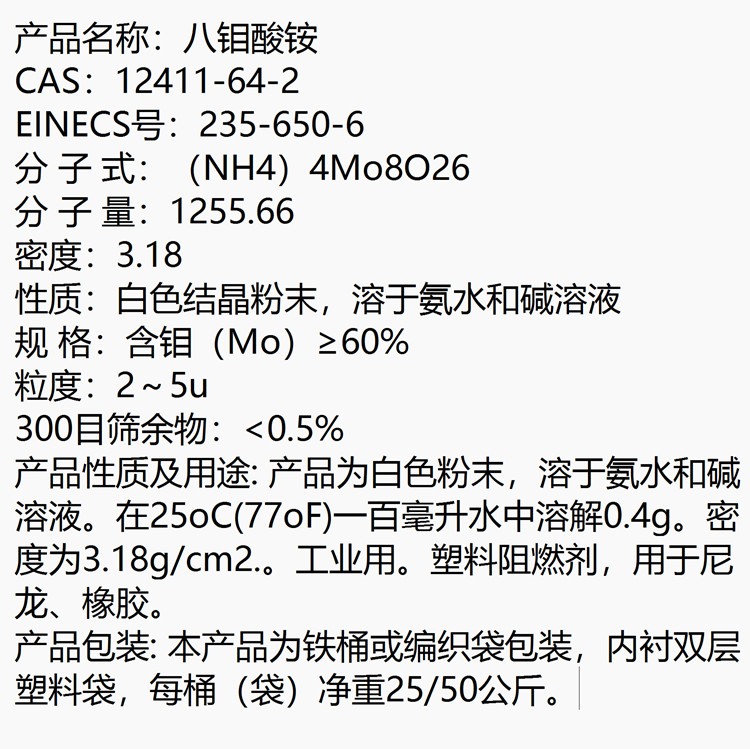 八钼酸铵 12411-64-2 用于尼龙 橡胶 塑料阻燃剂
