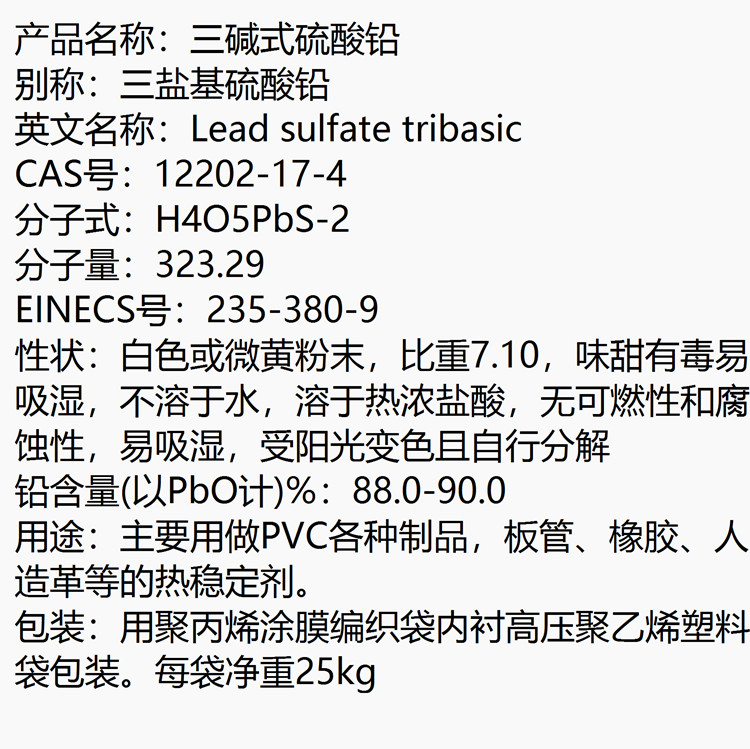 三碱式硫酸铅 12202-17-4 用做PVC制品热稳定剂
