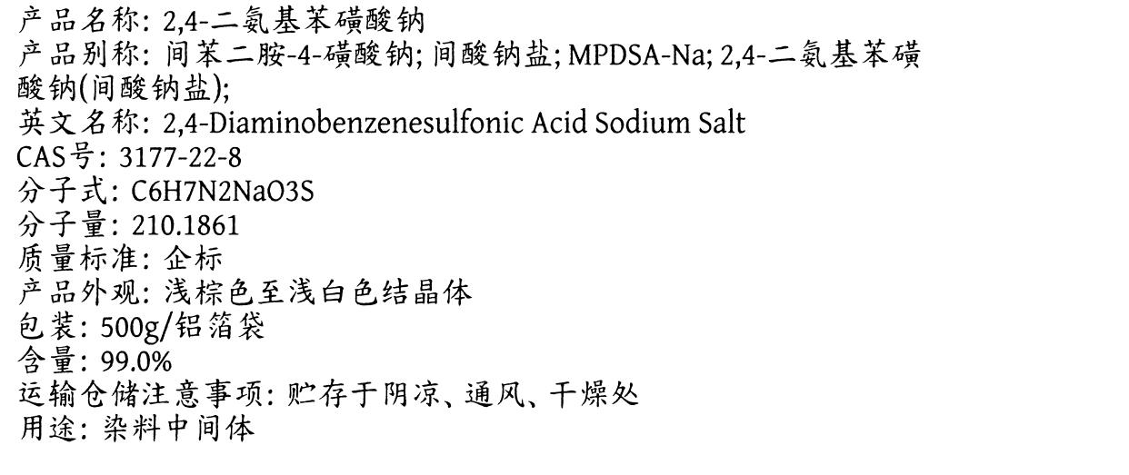 2,4-二氨基苯磺酸钠 3177-22-8 染料中间体 有机合成原料 含量99%