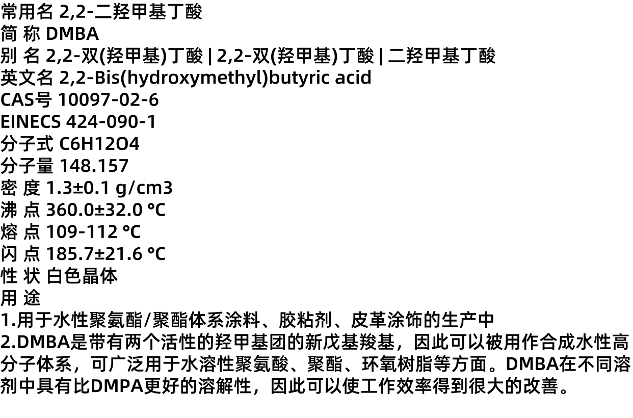 2,2-二羟甲基丁酸 DMBA 10097-02-6 涂料助剂 工业级 含量99% 合成材料