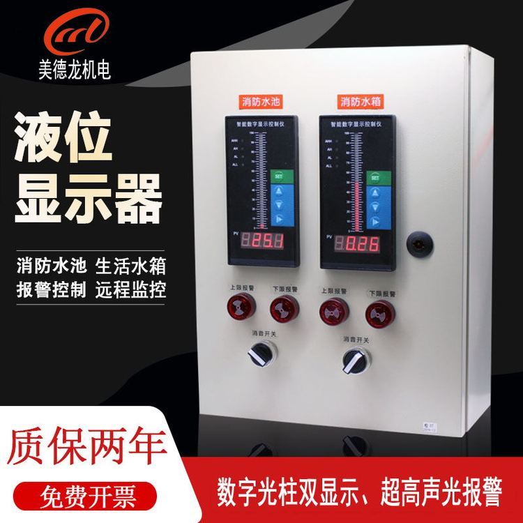 带有智能型数码显示,可实时显示现场的液位。当水箱(池)液位降至设定下限值时,智能液位监测仪输出信号并报警(可在值班室装一台智能液位监测仪和现场同步显示并报警);当水箱(池)液位超高至设定上限值时,智能液位监测仪输出信号并报警(可在值班室装一台智能液位监测仪和再场同步显示并报警)。