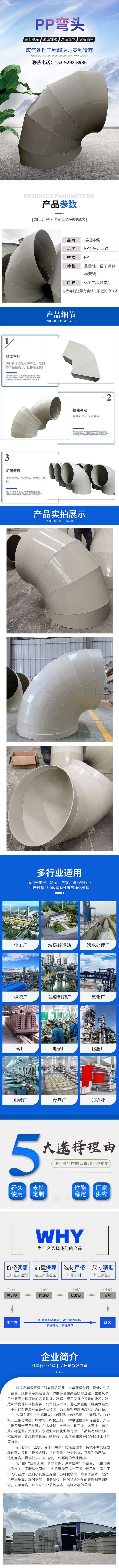 通风管道承插转接头 90度45度防腐pp弯头管件 厂家定制 瑞桓环保