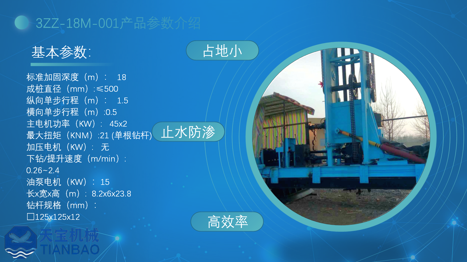 天宝机械止水防渗大扭矩纵向三轴小直径搅拌桩机3ZZ-18M-001型