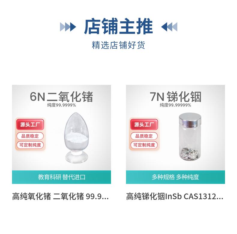 7n5锑棒、高纯铟、7n8n镉棒、高纯碲块、氧化铟、7n5砷棒、氧化镓、氧化铋、氧化物、高纯铝、高纯磷、锑化铟、氧化锑、碲化铋、催化剂、镀膜材料、碲锌镉、金属铜、氧化钪、红外材料、二氧化锗、高纯碲丸、二氧化硅、高纯碲锭、金属颗粒