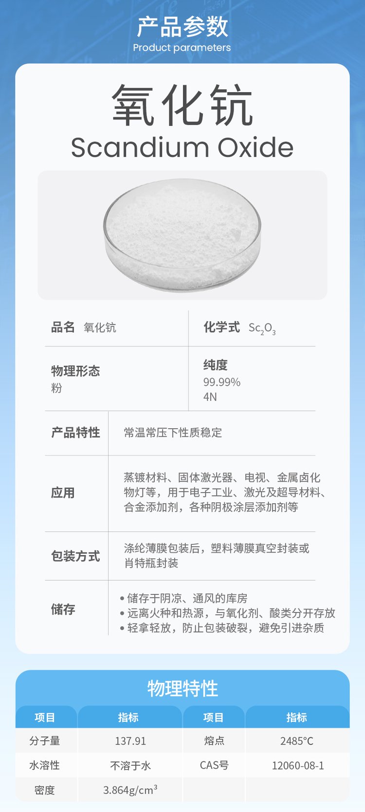 氧化钪 含量99.99%拓材科技 三氧化二钪 应用广泛 高纯科研试剂