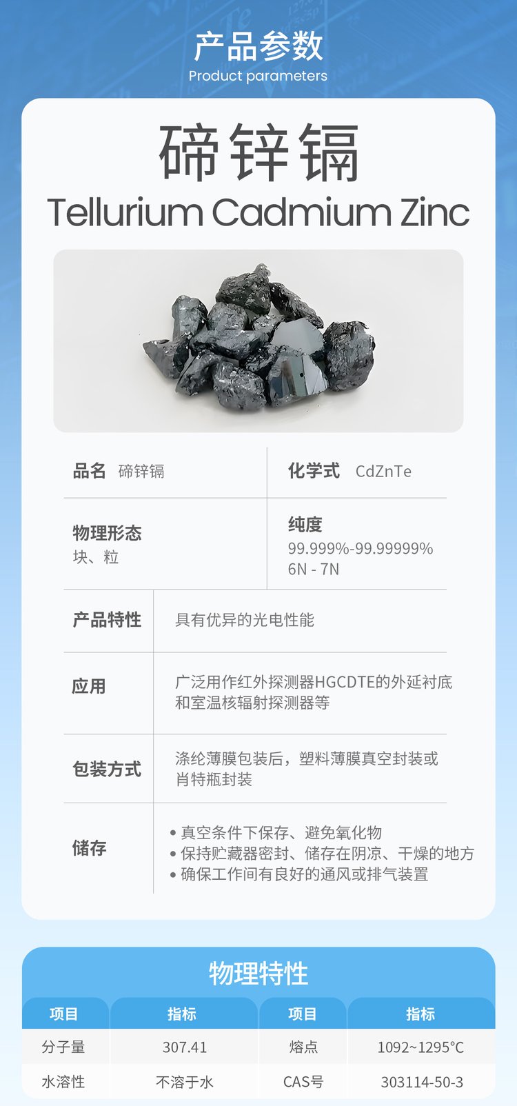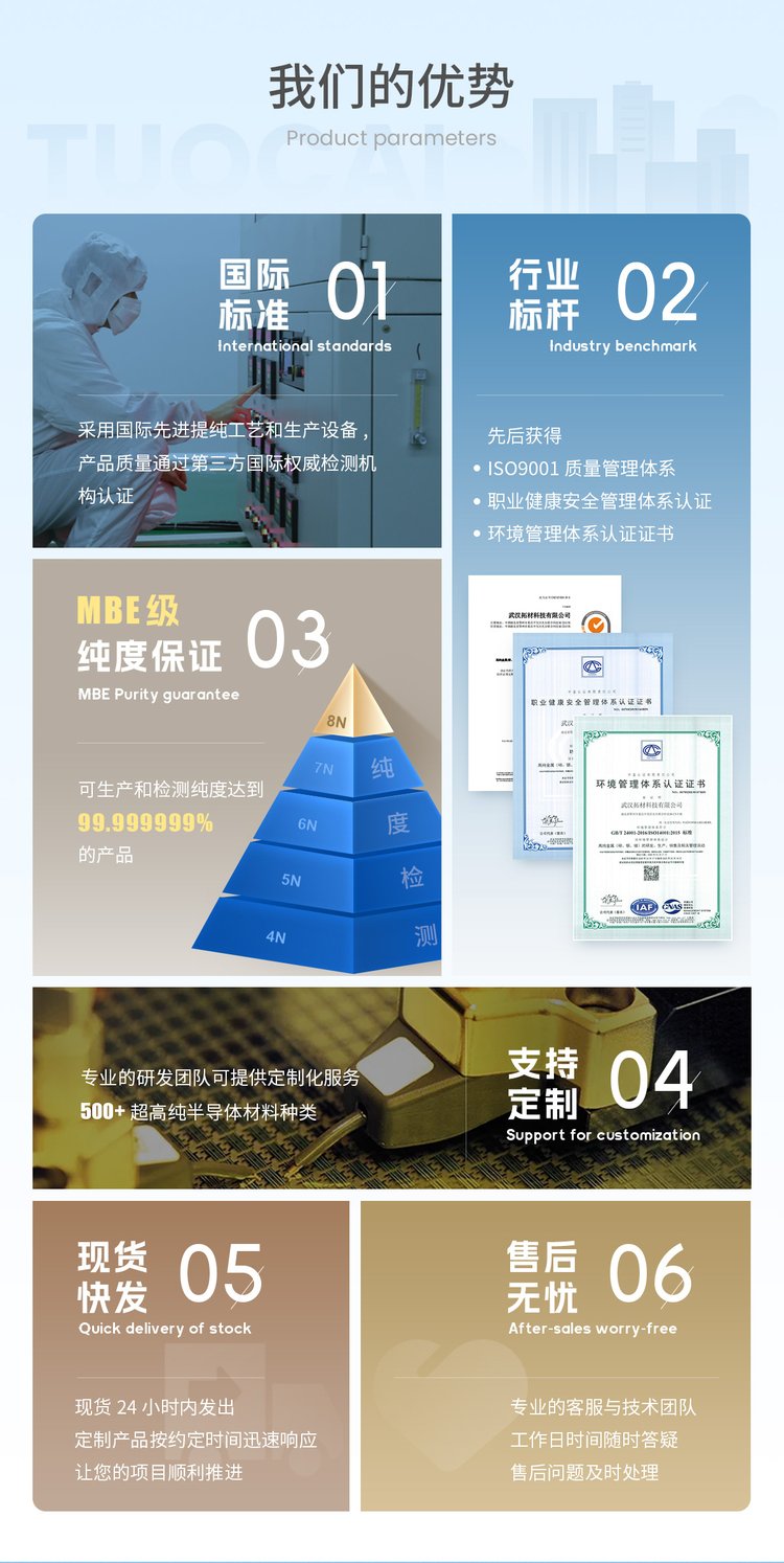 碲锌镉 6N 99.9999% 红外探测 高纯半导体材料 拓材科技