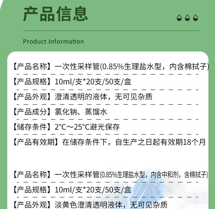 一次性采样管0.85%生理盐水型 公共卫生环境检测 9ml10ml 无菌灌装