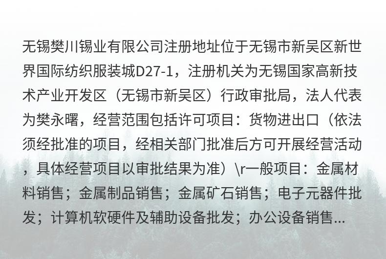 ©2025 无锡樊川锡业有限公司 版权所有 技术支持: