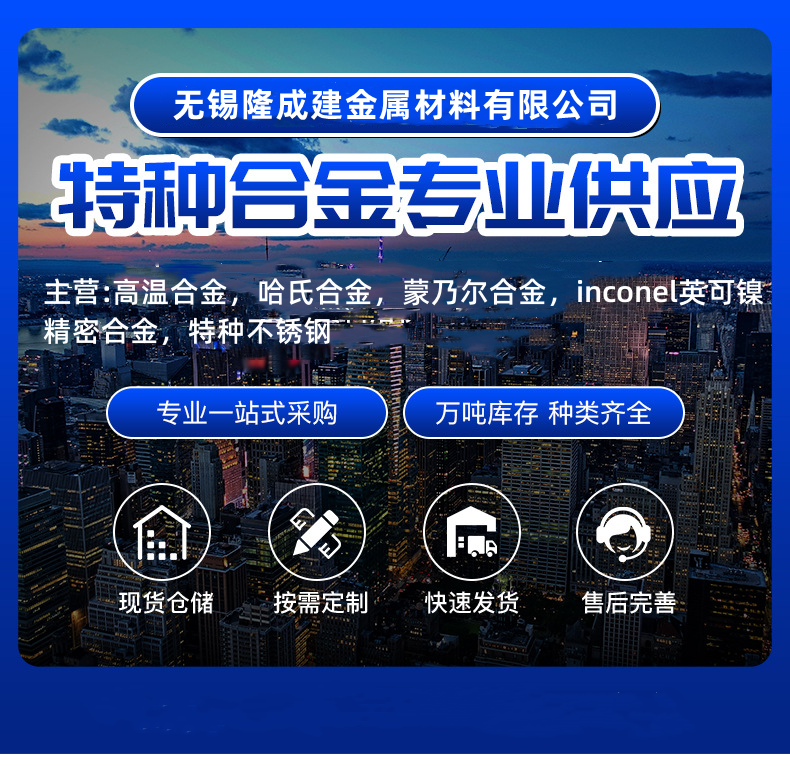 镍基合金、哈氏合金、高温合金、蒙乃尔合金、钛合金、铜镍合金、双相钢、沉淀硬化钢、耐热钢铸件、圆钢、钢板、无缝管、纯镍板、不锈钢