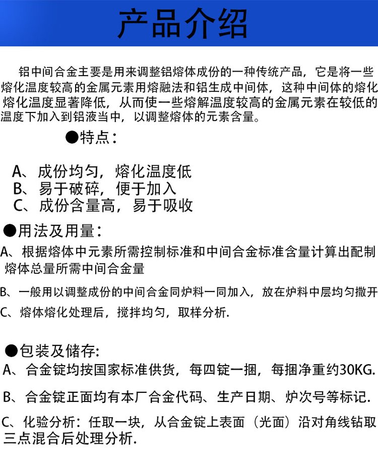 金属添加用 铝铒合金5 铝铒10 AlEr20 提高塑形 改善性能