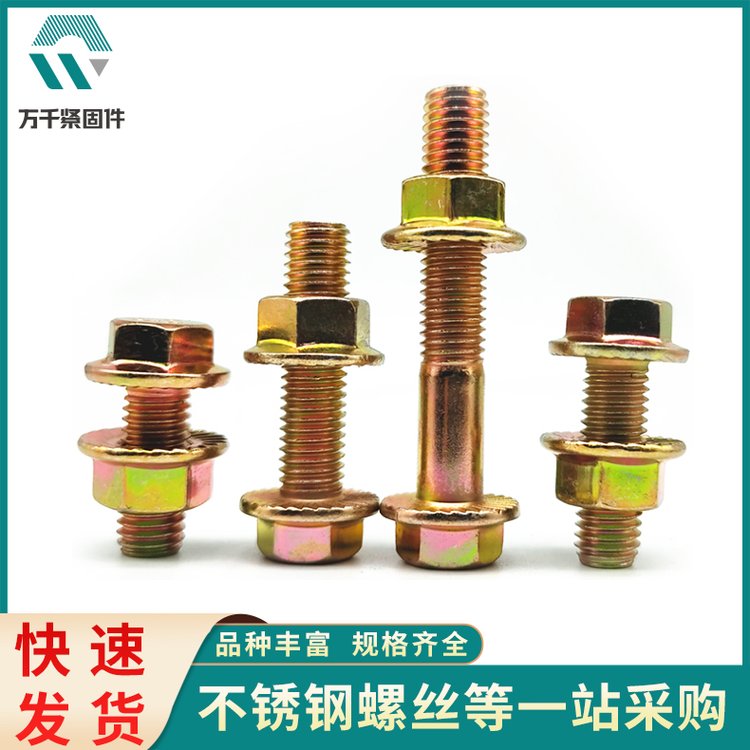 JISB1189 半牙 8.8级 10.9级 彩锌蓝白锌 平脑带齿 六角法兰螺栓