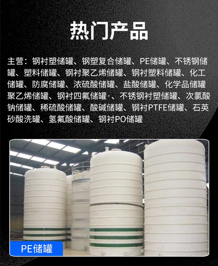 化工罐、储槽罐、废水罐、储存罐、溶药箱、乙烯罐、储水罐、硫酸罐、贮槽罐、运输罐、盐酸储罐、乙醛储罐、容器储罐、四氟储罐、立式储罐、全塑储罐、化工酸罐、碳钢储罐、塑料贮槽、塑料储罐、全塑容器、衬塑储罐、硝酸储罐、酒精储罐、防腐蚀罐