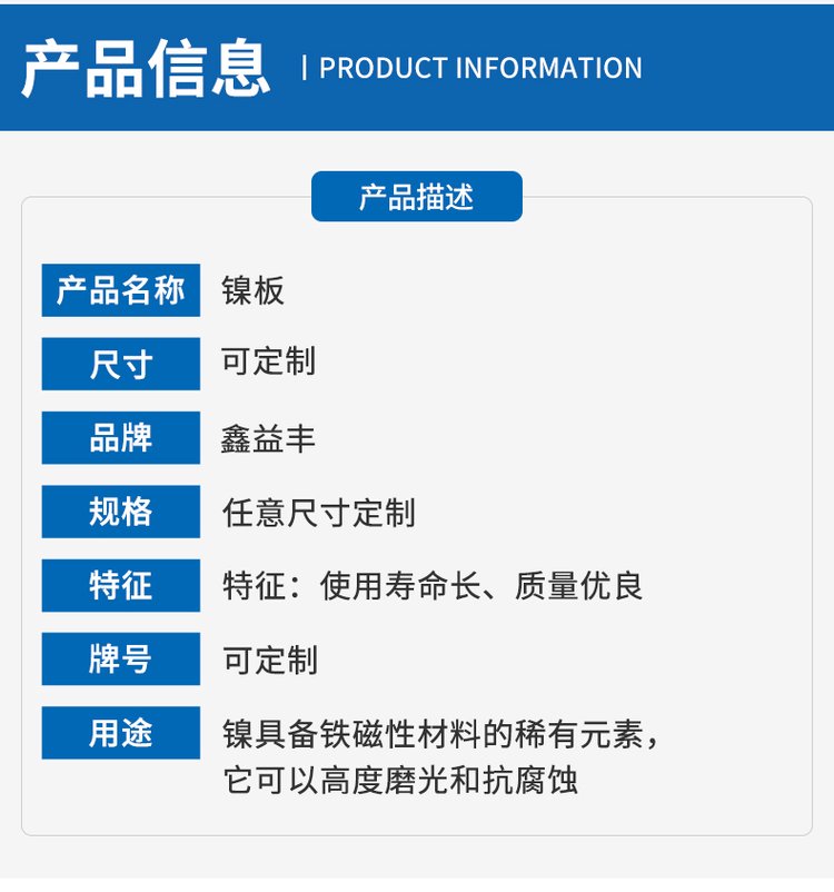 鑫益丰 供应工业纯镍板 电解镍 镍含量≥99.96% 电镀镍板 镍角