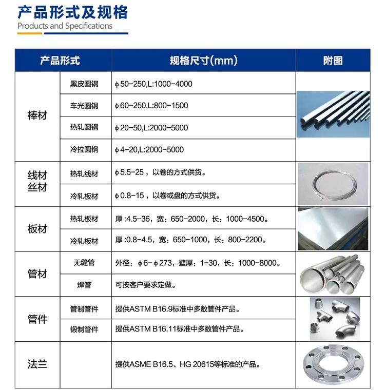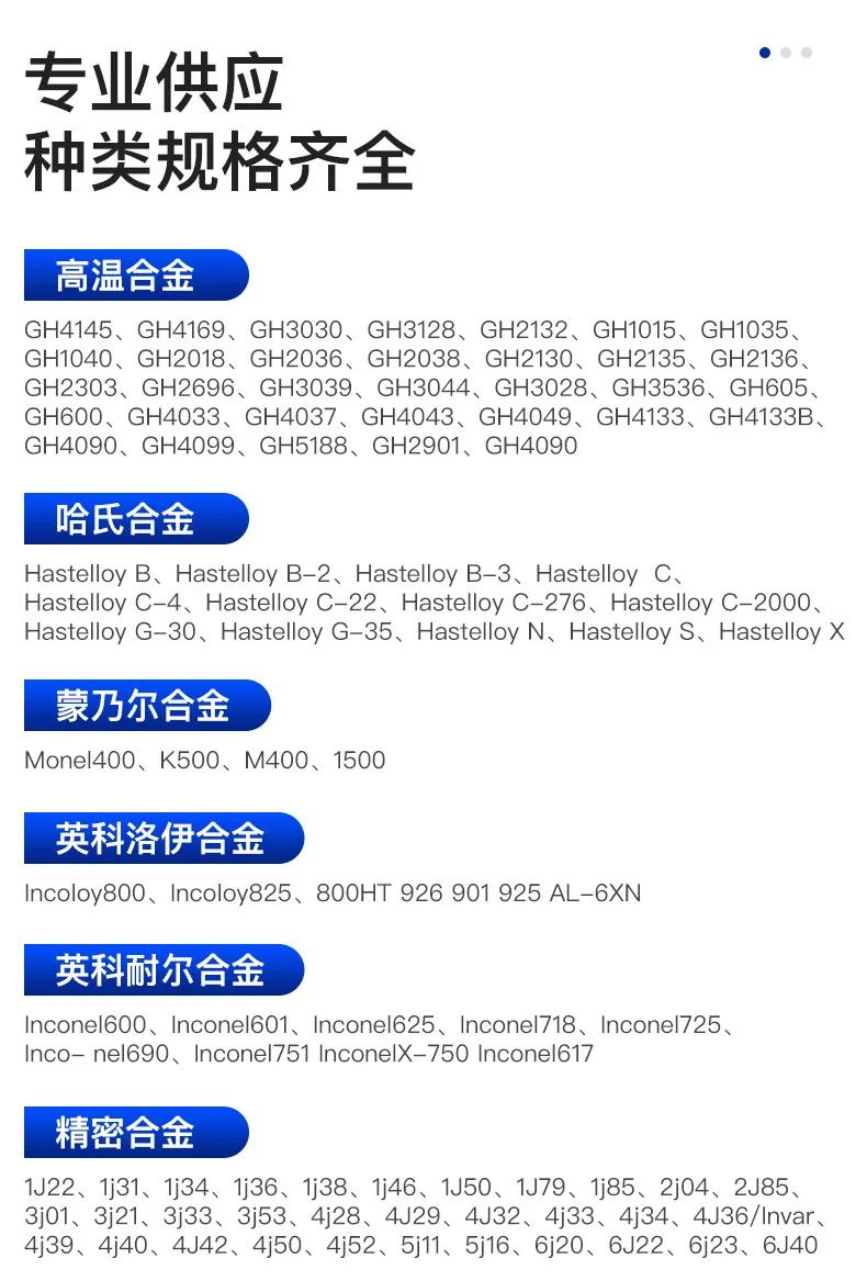镍板、圆棒、无缝管