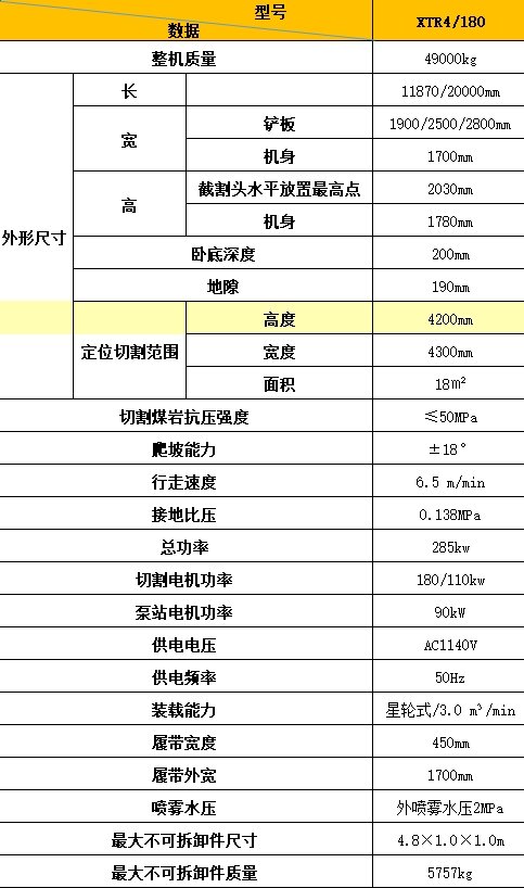 XTR180掘进机能够实现连续切割、装载、运输作业,工作过程中对周围岩石扰动小,开挖安全、成型质量高,超欠挖小,巷道成型规则, 开挖的断面形状和尺寸可任意变化,该机整机调动灵活,使用可靠。