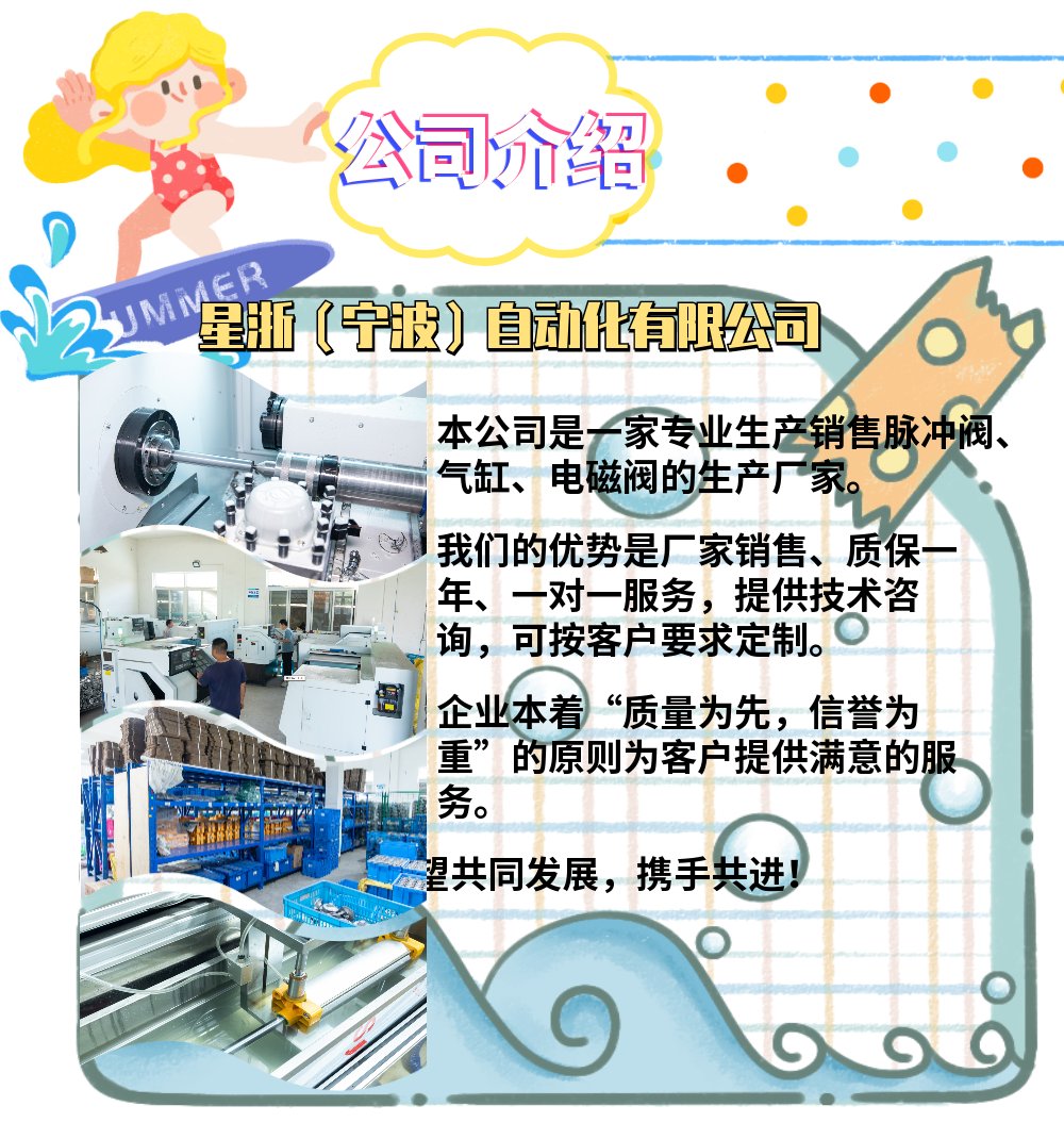 星浙(宁波)自动化有限公司-星浙气动。星浙气动是一家专业研发,生产及销售经验的高新技术企业。公司负责生产气动阀门、控制器系统、振动器输送等气动元件。交通便利,位多年来,经全体员工共同奋斗,艰苦创业,勇于拼搏,抓管理,抓质量,终于闯出了自己的市场为导向,以质量求生存的道路,不断地创新,并树立坚定不移的以质取胜的信念。多年来深受客户的好评,以好的产品和完善的服务赢得用户的信赖。我们以全新的市场理念,建立了以客户完善的用户信息反馈系统,认真用户的意见,不断地改进,良好的售后服务,赢的了用户的信赖。置优越,位于宁波奉化江口街道,南是全球五百佳滕头村,西是萧王庙接到塘湾村,公司产品被大量运用于化工、冶金、钢铁、水泥、热电、锅炉、焚烧等环保设备。