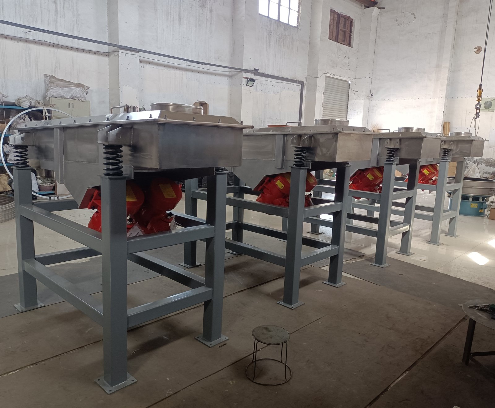 这四台直线筛由于客户现场物料情况特殊,为了安全生产,特采用卧式粉尘防爆电机为振动源.