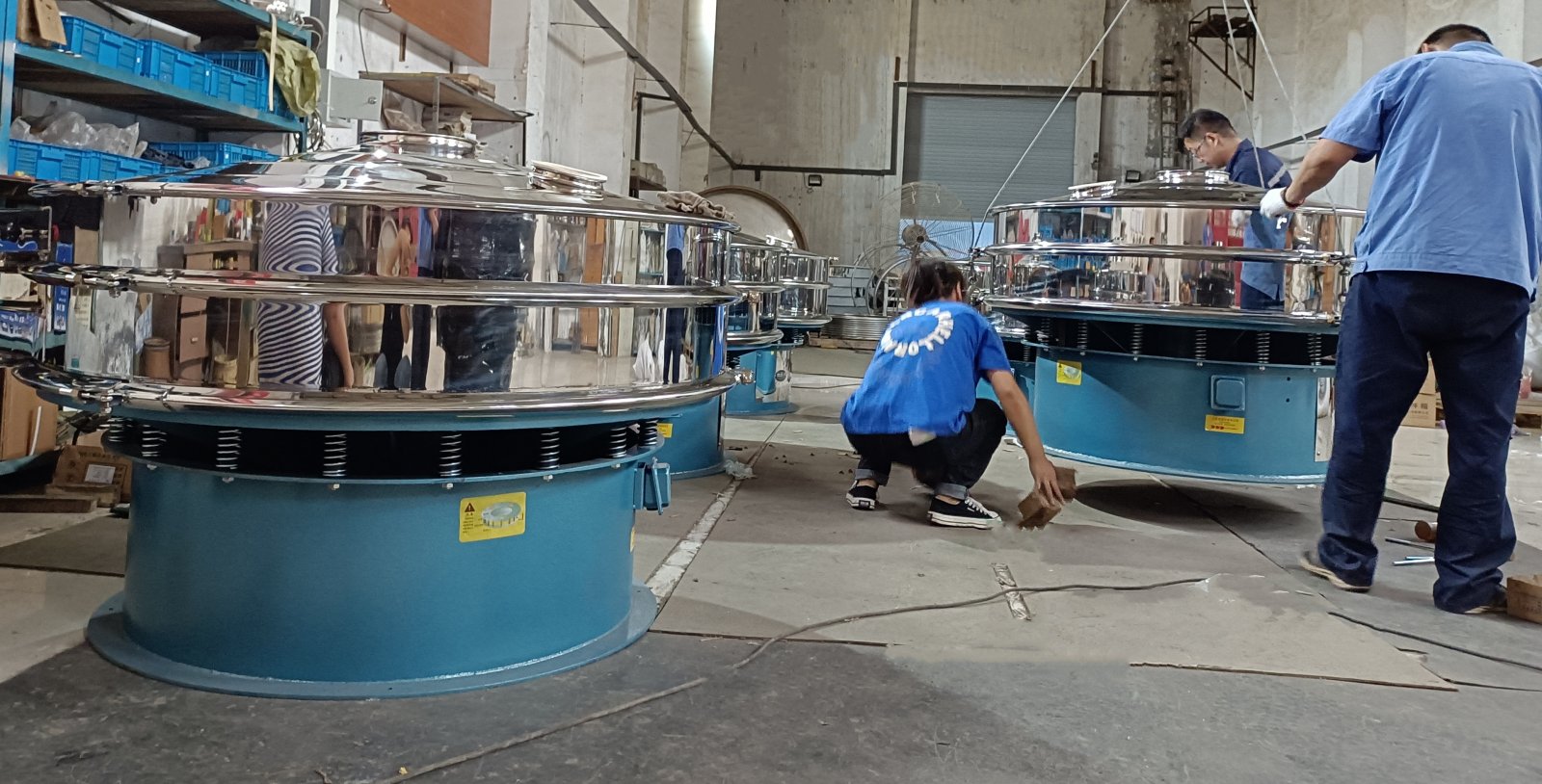 经过车间工匠们7天奋战,裁板、卷框、卷束环、下料焊接、校正、网架打眼、绷网等一系列工序,雷蒙特M1500-1S电池材料专用三次元振动筛6台终于进入组装车间。目前组装已接近尾声,马上要发往我国的大东北。