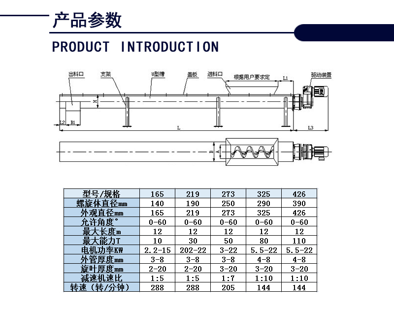 U型螺旋输送机 石灰粉螺旋绞龙 304不锈钢 耐腐蚀环保耐用 天太