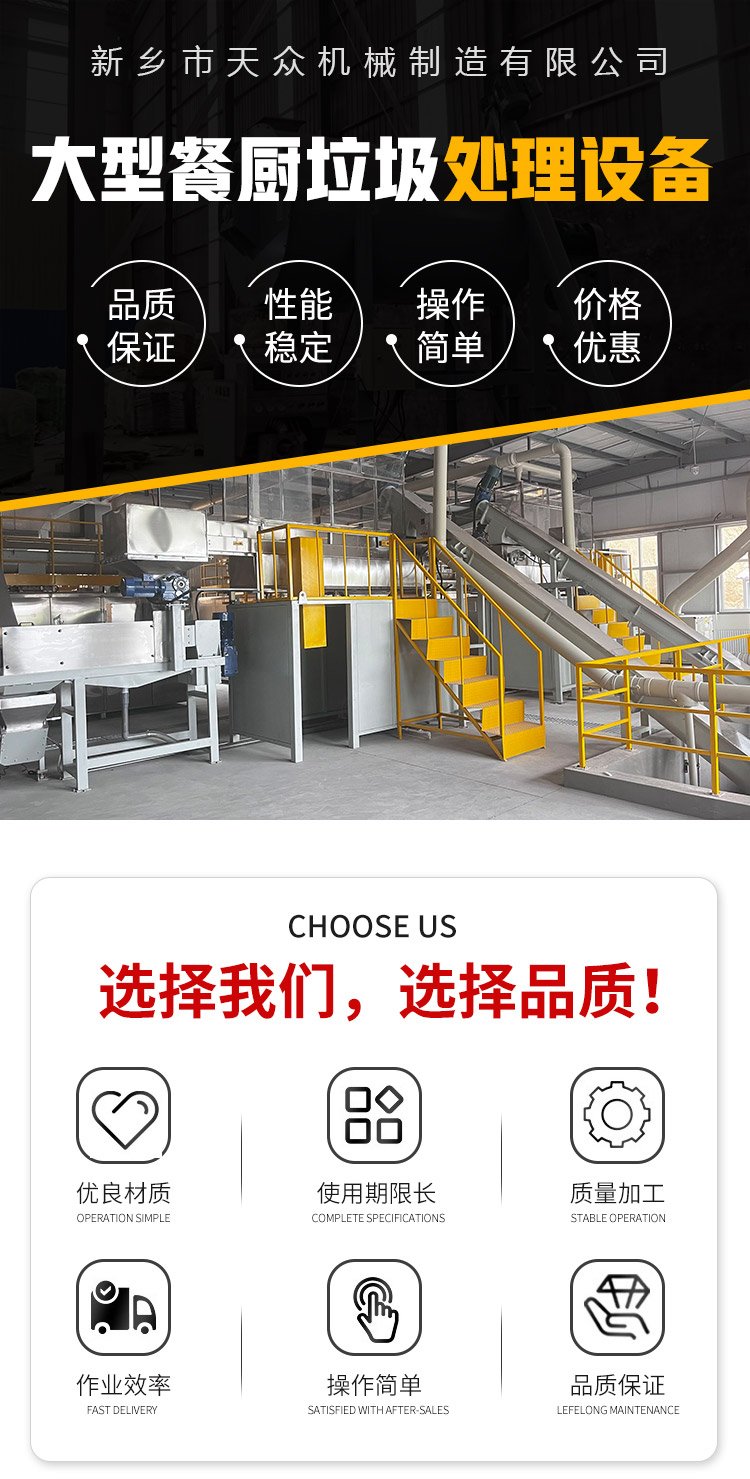 大型餐厨垃圾处理设备 螺旋输送机 全自动一体化处理 天众机械