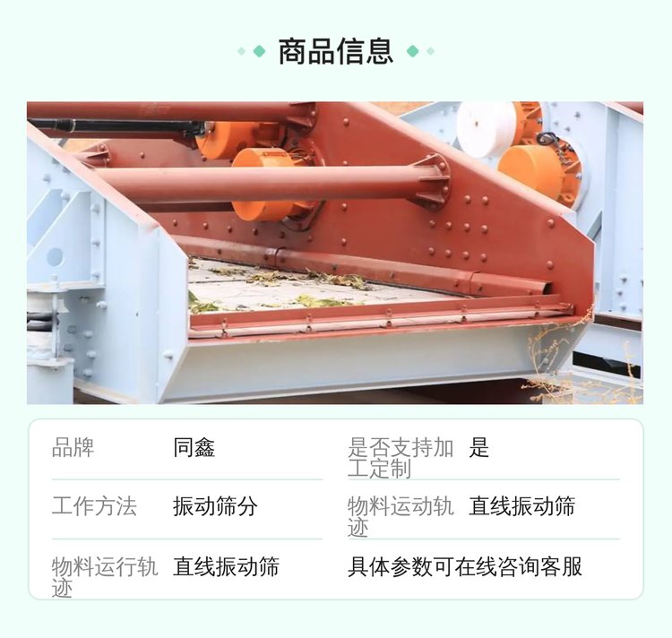 同鑫TX系列振动筛 聚氨酯筛板 直线轨迹 煤泥尾矿脱水