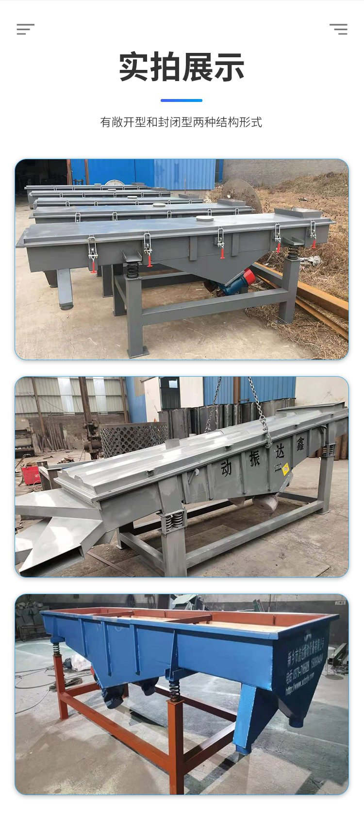 豆浆过滤机、多层直线筛、石英砂振动筛、方型摇摆筛、圆形摇摆筛、旋振筛、不锈钢振动筛、斗式提升机、振动给料机、木制筛框