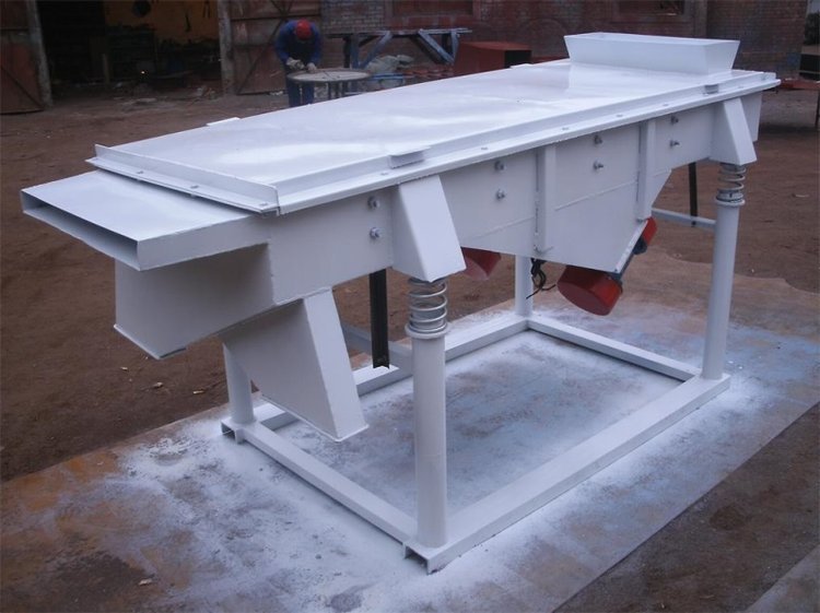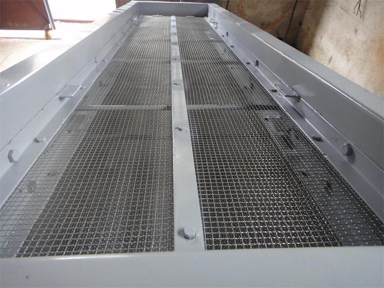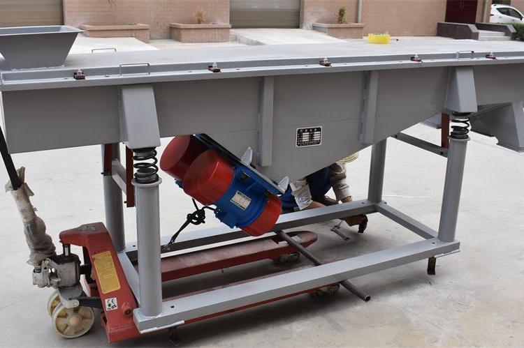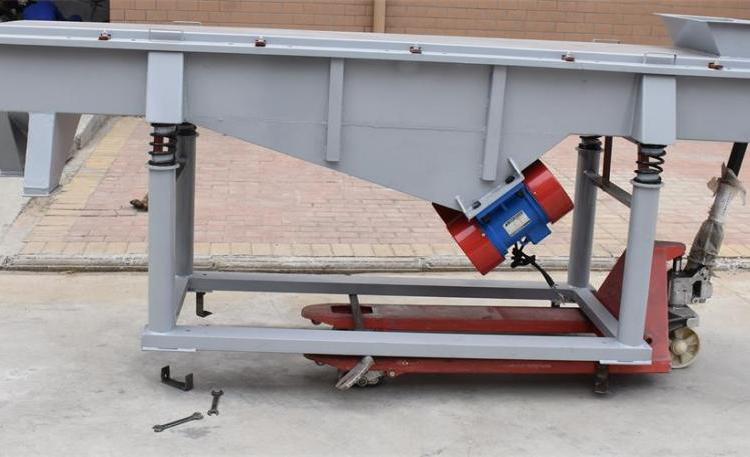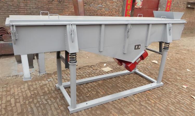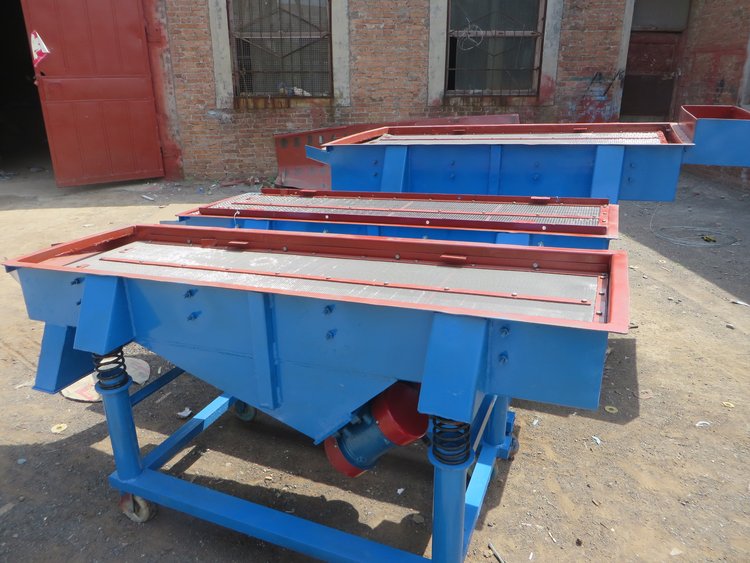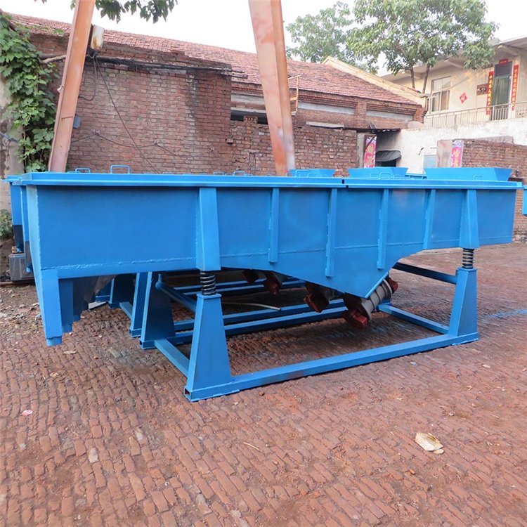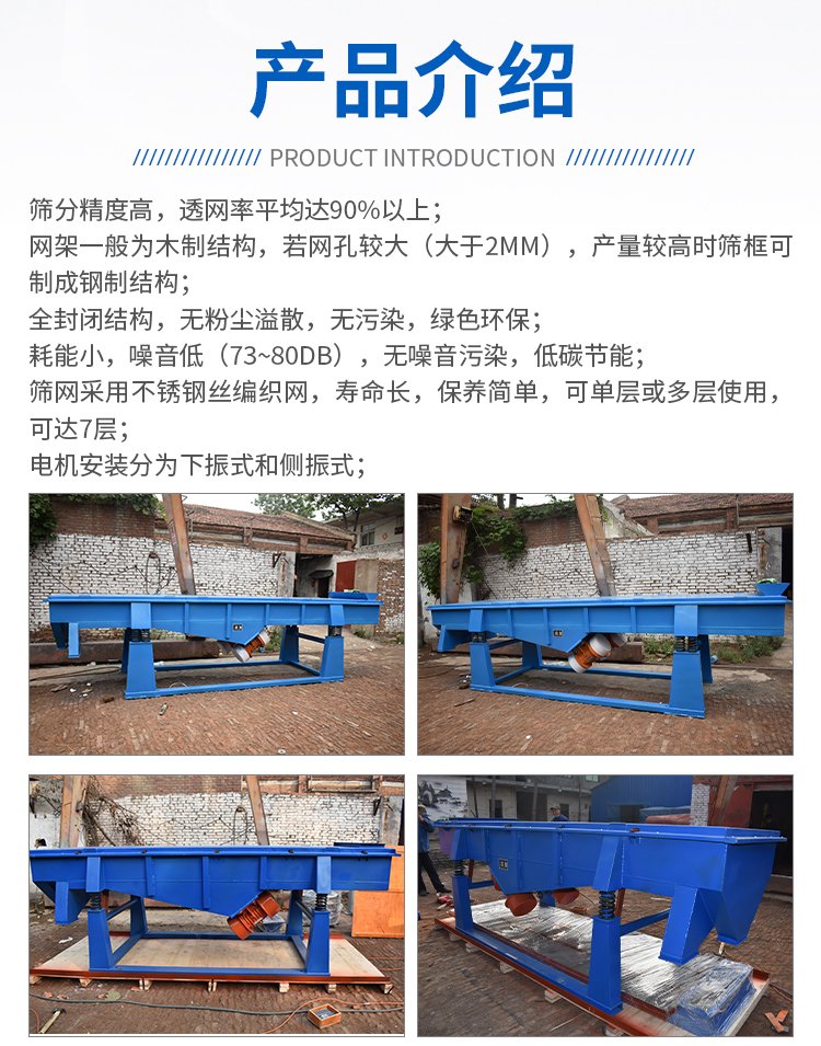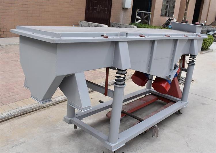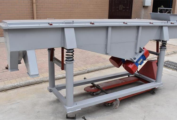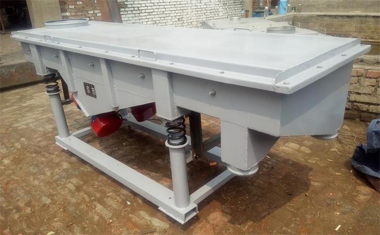 DZSF振动筛系列是由筛箱、筛框、振动电机、减振系统及座架等组成。振动筛是用振动电机作为振动源,固定在筛箱上两台相同的振动电机做相反方向自同步旋转,振动电机所带的偏心块在旋转时各个瞬间位置所产生的离心力之分力沿抛掷方向作往复运动,使支承在减振器上的整个筛机做直线振动,使物料在筛面上被抛起的同时向前作直线运动,物料从入料端落入筛框后,迅速前进、松散透筛,完成筛分作业,以合理匹配筛网达到筛分的目的。