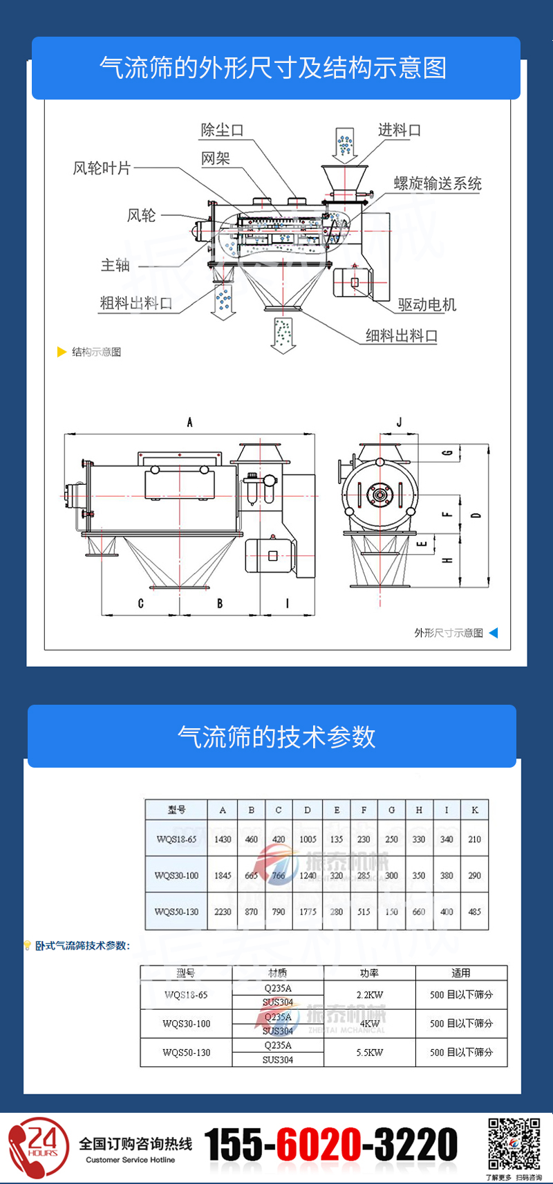 硅胶粉卧式气流筛 轻质氧化镁气旋筛 氧化钨旋风筛粉机 离心筛分机