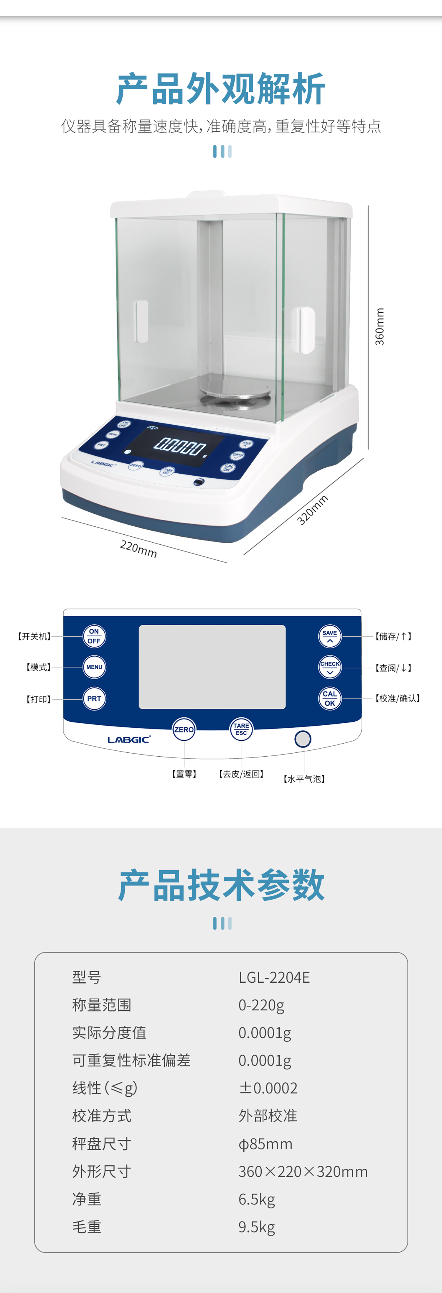 实验室电子天平 万分之一分析天平 0.0001g 型号LGL-2204E 温度补偿