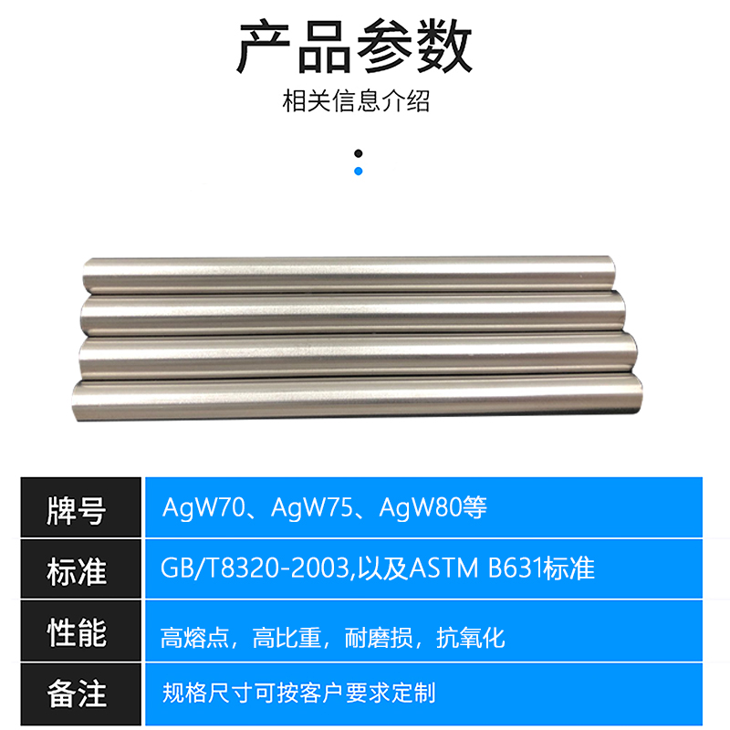 出售银钨合金AgW70 75银钨条 银电极板 针用银钨电极棒