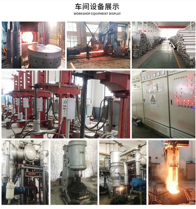公司现有棒材精锻机、轧板机、轧管机退火炉、熔炉、6140车床、数控车床、钻铣床、锯床、加工中心、氩弧焊机、 喷砂机100T冲床、100T压力机等生产设备。