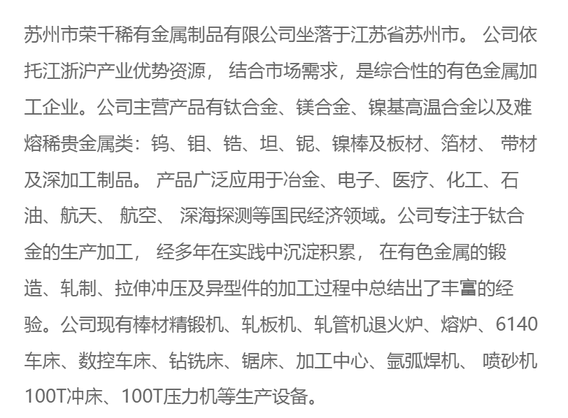 苏州市荣千稀有金属制品有限公司