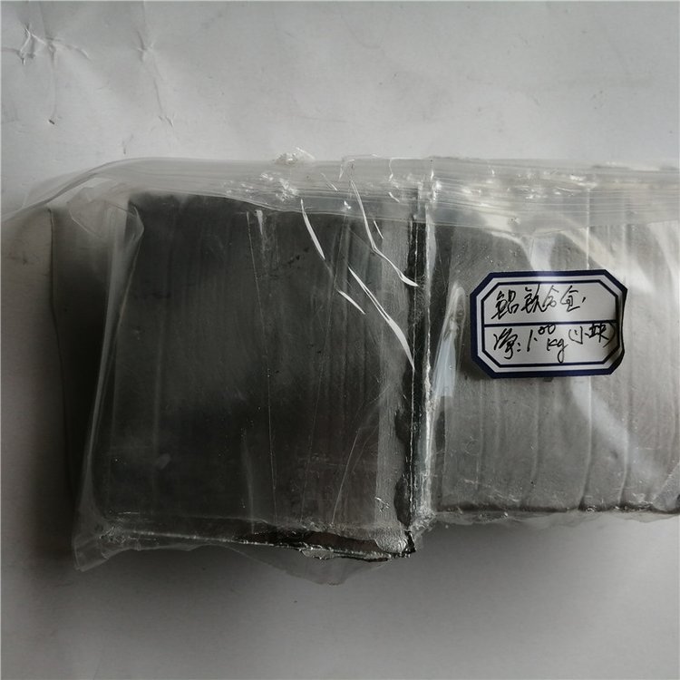 制备铝镁钪中间合金工业纯铝和工业纯镁,安比例加热熔化。加入ScCl3·NaCl·KCl熔盐,及特定添加剂,熔炼,出炉浇铸,得铝镁钪中间合金。