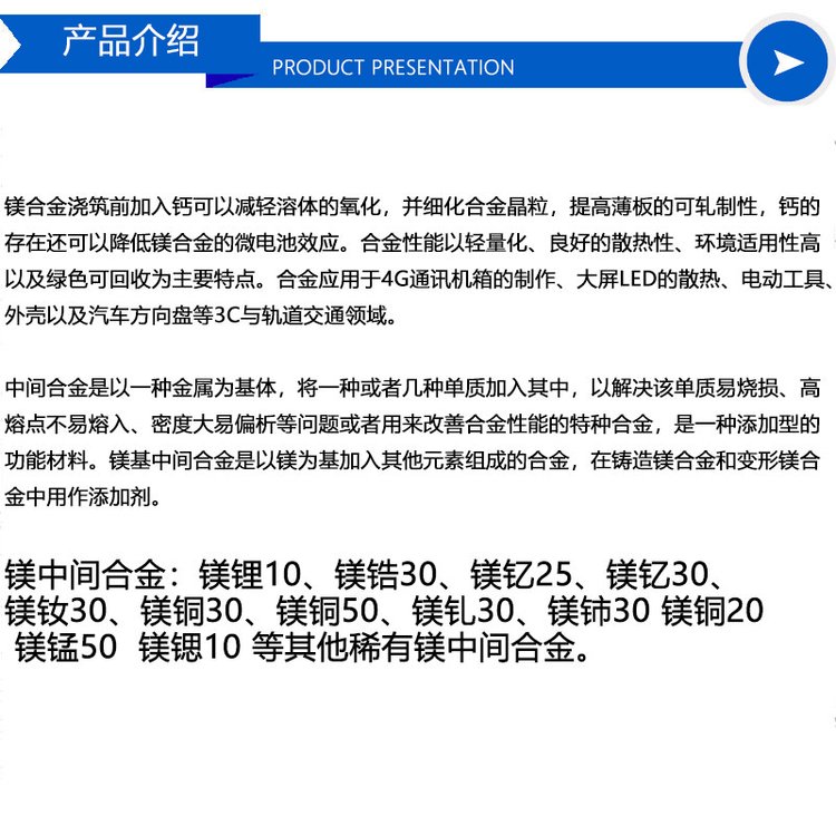 镁钇合金 镁钇30 镁钇20熔炼添加用镁基稀土中间合金 材质保证