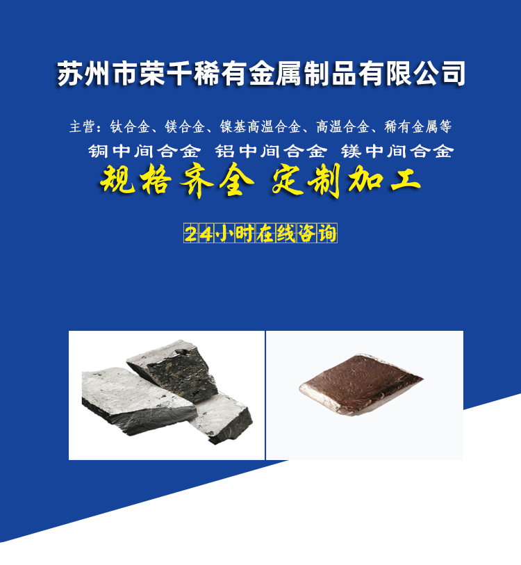 铜稀土中间合金荣千铜锑50细化晶粒科研实验添加剂用可零售