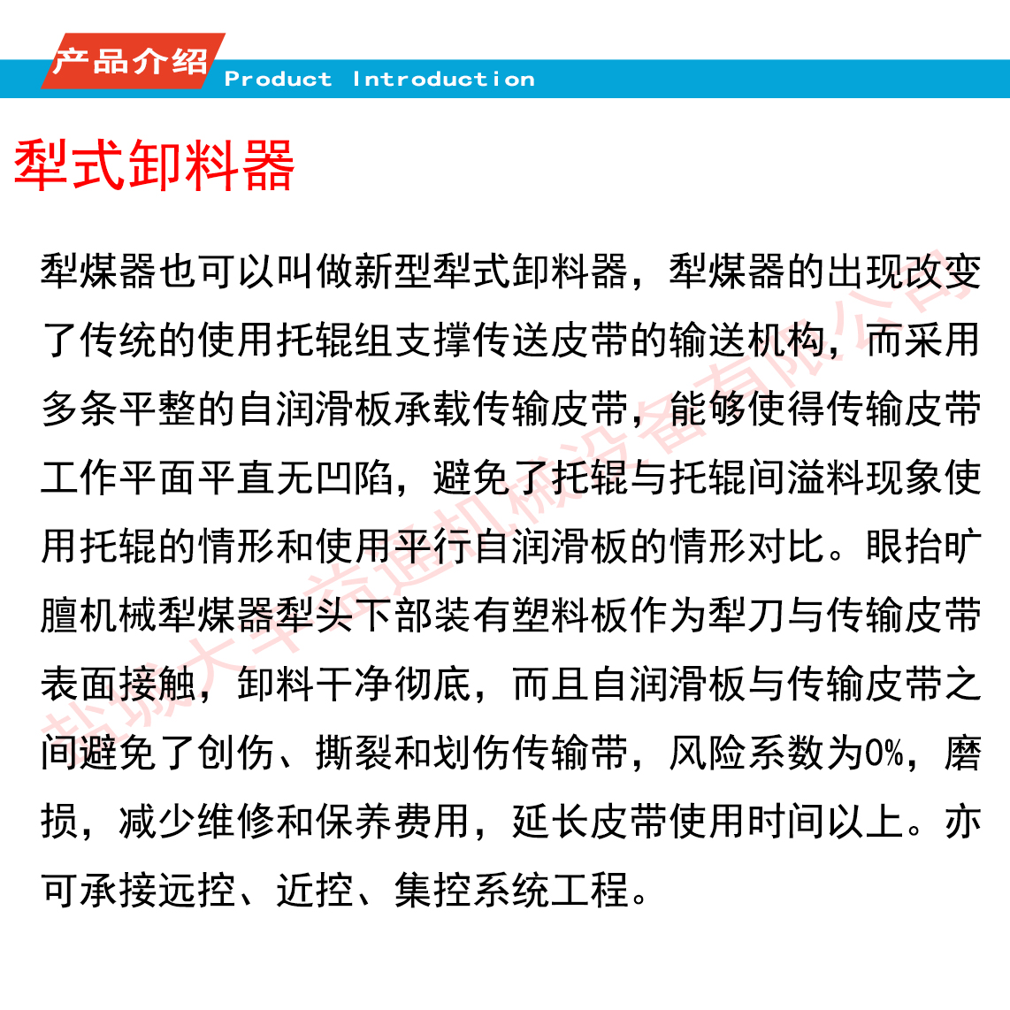 空气压缩机、电液推杆、电动推杆、电液动犁式卸料器、中高压空压机、电液动 推杆、液压调偏装置、冷却器、电动滚筒、卸灰阀、分散机、犁煤器、干油泵黄油泵、防溢裙板、防尘帘、夹持器、清扫器、矿山设备、皮带输送设备、DYTZ电液推杆、DYTP电液推杆、DYTZ电液推杆、DT电动推杆、补偿器、暖风机