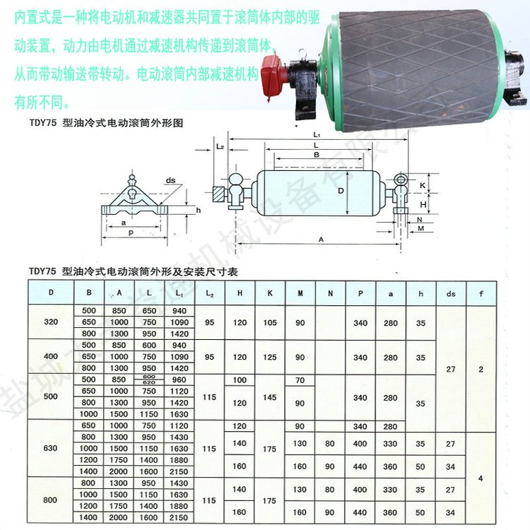 TDY75型50100-1.5-5.5KW油冷式电动滚筒 聚氨酯包胶