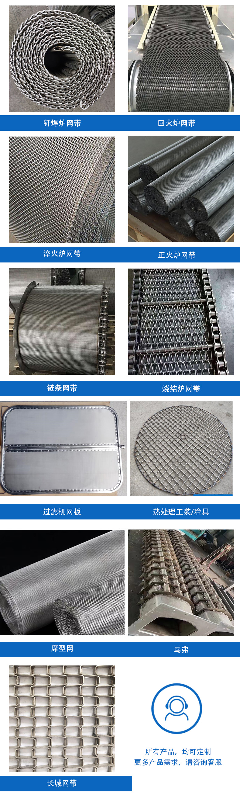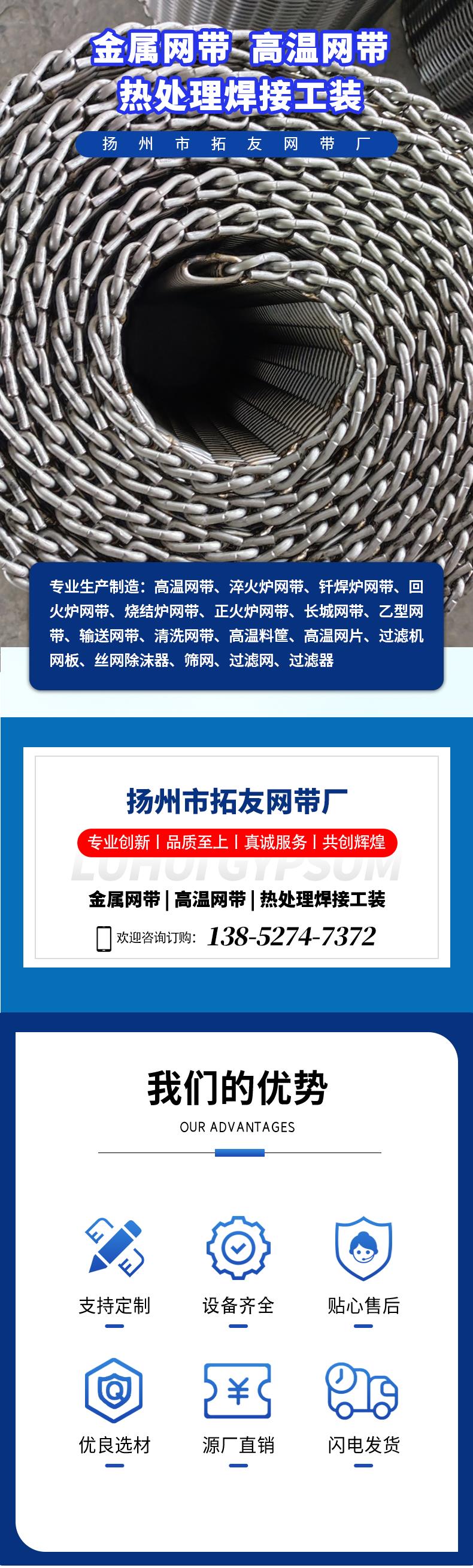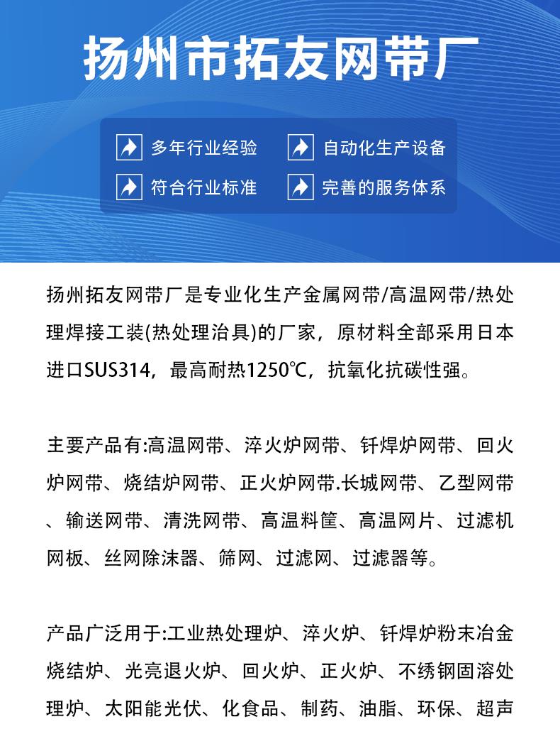输送带、热处理、淬火炉、正火炉、钎焊炉、退火炉、清洗机、过滤网、过滤器、过滤机、加热炉、输送网、拉伸网、高温网、炉网带、回火炉、运输网带、链条传动、定制滤网、链条网带、链式网带、橡塑防滑、外墙施工、长城网带、传送链条