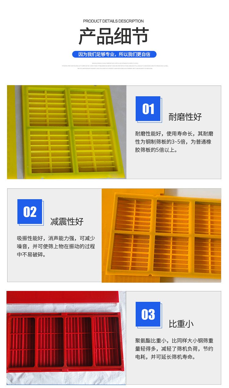矿用聚氨酯条缝脱水筛板 pu高频弛涨筛网 牛筋振动筛 可定制