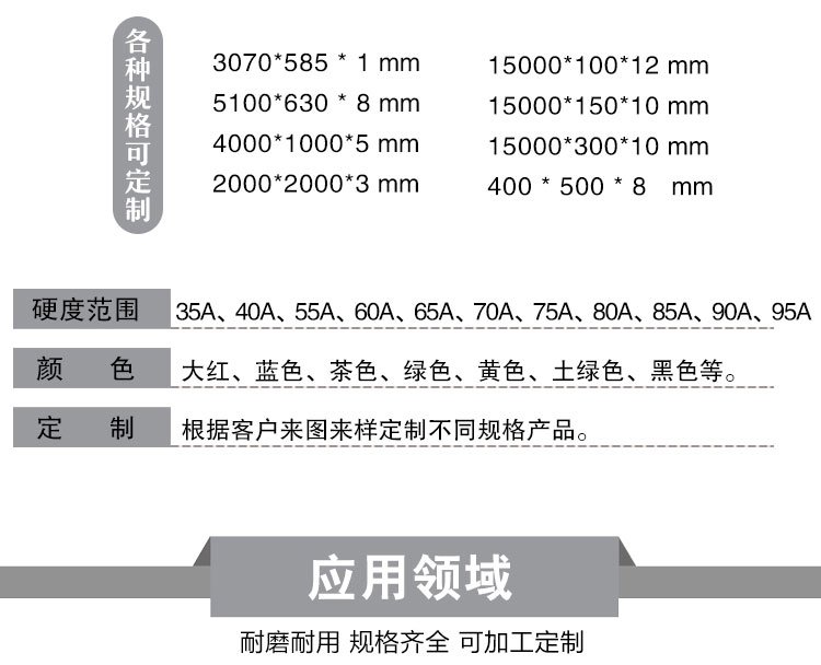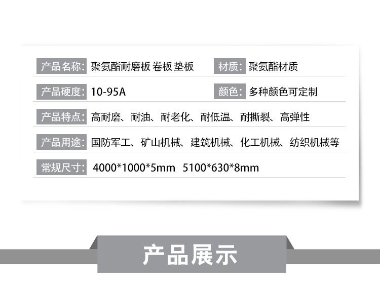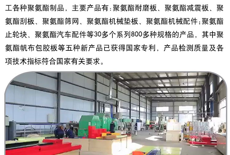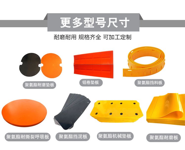 叉车轮、绳锯机、导线轮、刮煤板、刮水板、档车块、定制板、减震板、耐磨板、耐磨条、传动轮、挡车板、后导轮、雨篦子、阻胎器、聚氨酯、止滑块、清扫器、搅拌块、方向盘、定位器、细筛网、防滑块、耐油板、万向轮
