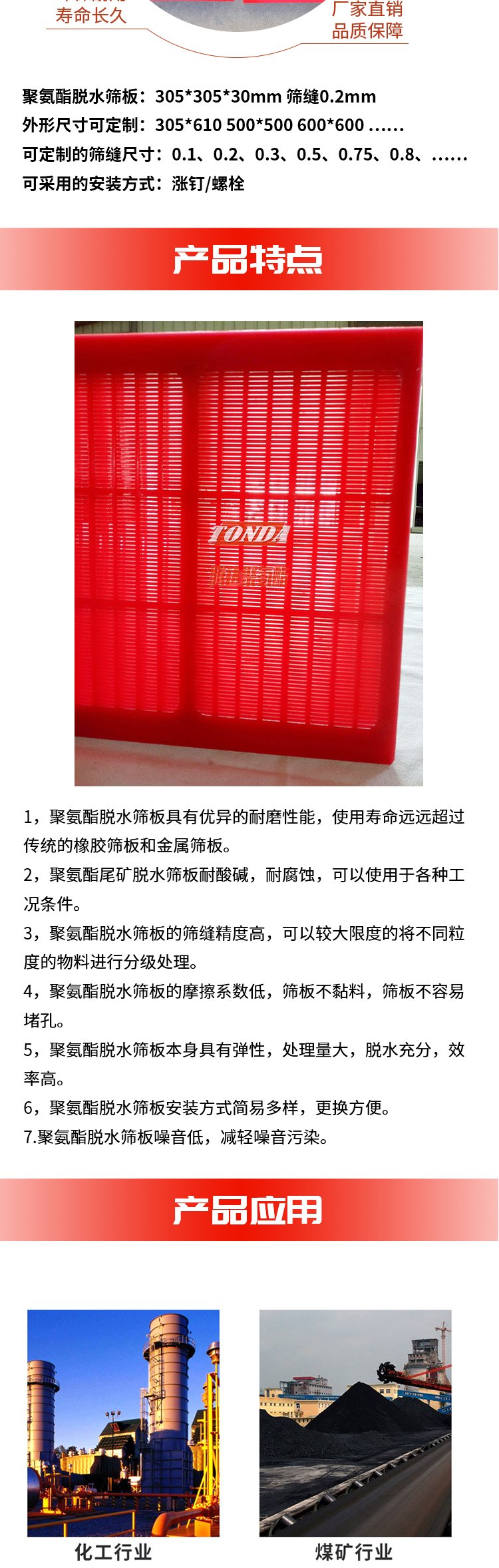 耐磨板、包胶板、聚氨酯板、筛板轨座、聚氨酯条、脱水筛板、叶轮护板、平板筛网、聚氨酯刮板、聚氨酯筛板、聚氨酯方条、聚氨酯胶板、聚氨酯筛网、聚氨酯轨座、聚氨酯刮泥板、聚氨酯刮煤板、聚氨酯刮雪板、聚氨酯减震板、聚氨酯脱水筛网、聚氨酯选矿筛板、聚氨酯分级筛板、聚氨酯方孔筛网、聚氨酯分级筛网
