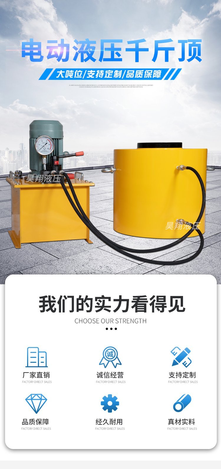 千斤顶电动液压双作用立式分离式液压油缸油泵10吨20/50/100/200T