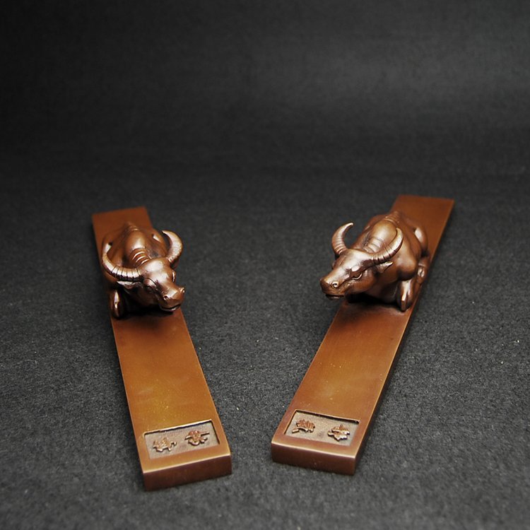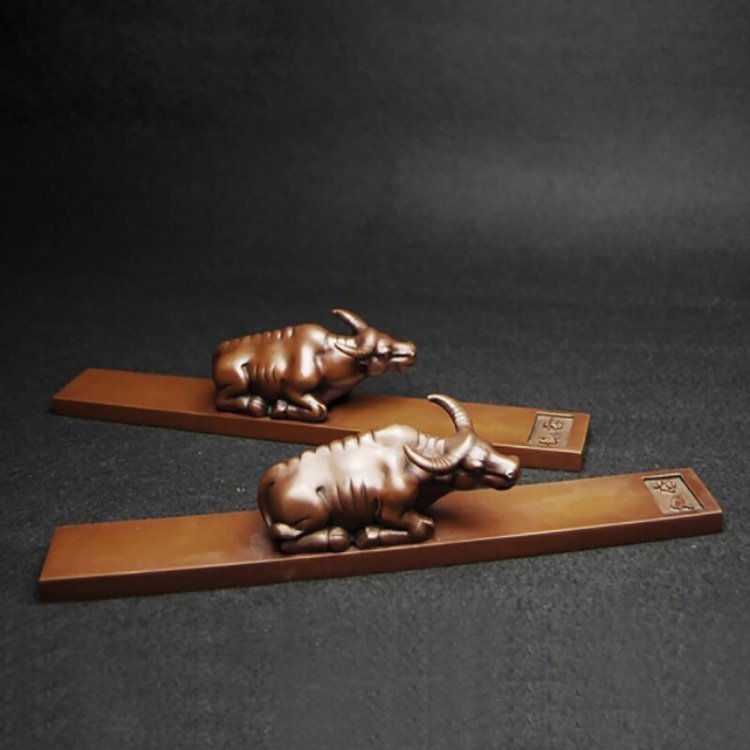纯紫铜实心镇纸卧牛手提钮镇尺高档文房四宝书法礼物书桌装饰摆件