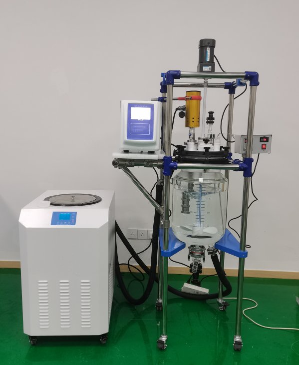 双层玻璃反应釜为双层夹套式设计,内层放入反应溶媒,可做搅拌反应,夹层可通上不同的冷热源(冷冻液,热水或热油)做循环加热或冷却反应。在设定恒温条件下,密封的玻璃反应釜内,可根据使用要求在常压或负压条件下进行搅拌反应,并能进行反应溶液的回流与蒸馏,是现代精细化工、生物制药和新材料合成的理想中试、生产设备。