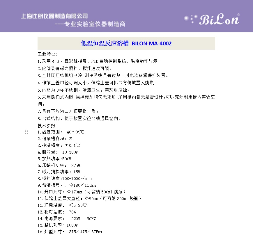 上海比朗仪器制造有限公司