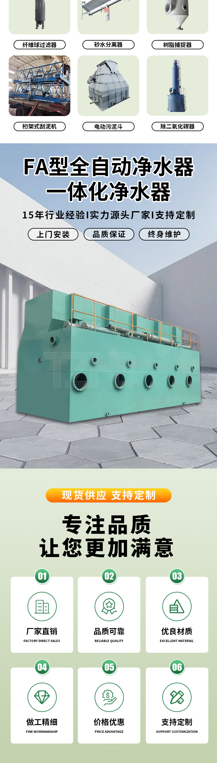 过滤器、加药装置、污水处理、气浮设备、无阀过滤器、净水器、多介质过滤器、活性炭过滤器、石英砂过滤器、一体化净水器、微滤机、沉淀池、刮泥机、一体化污水处理设备、中心传动刮泥机、浓缩池刮泥机、外进式微滤机、转鼓微滤机、FA全自动净水器、全自动干粉加药装置、PAM制备投加装置、机械过滤器、生活污水处理设备、浅层气浮设备、斜板沉淀池