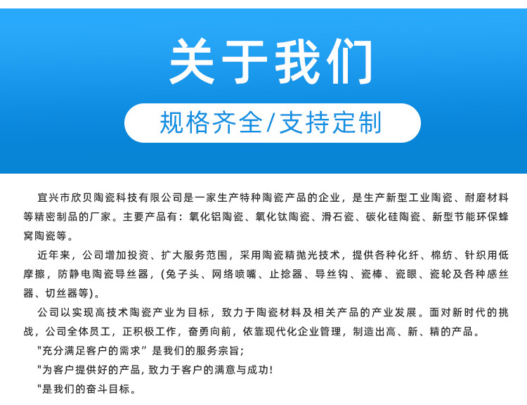 陶瓷管、纺织陶瓷、陶瓷螺纹、陶瓷坩埚、绝缘陶瓷、陶瓷喷沙、陶瓷喷咀、发热陶瓷钉、陶瓷异形件、氧化锆陶瓷、绝缘耐高温、固定陶瓷钉、电子陶瓷材料、氧化铝陶瓷环、电子烟陶瓷钉