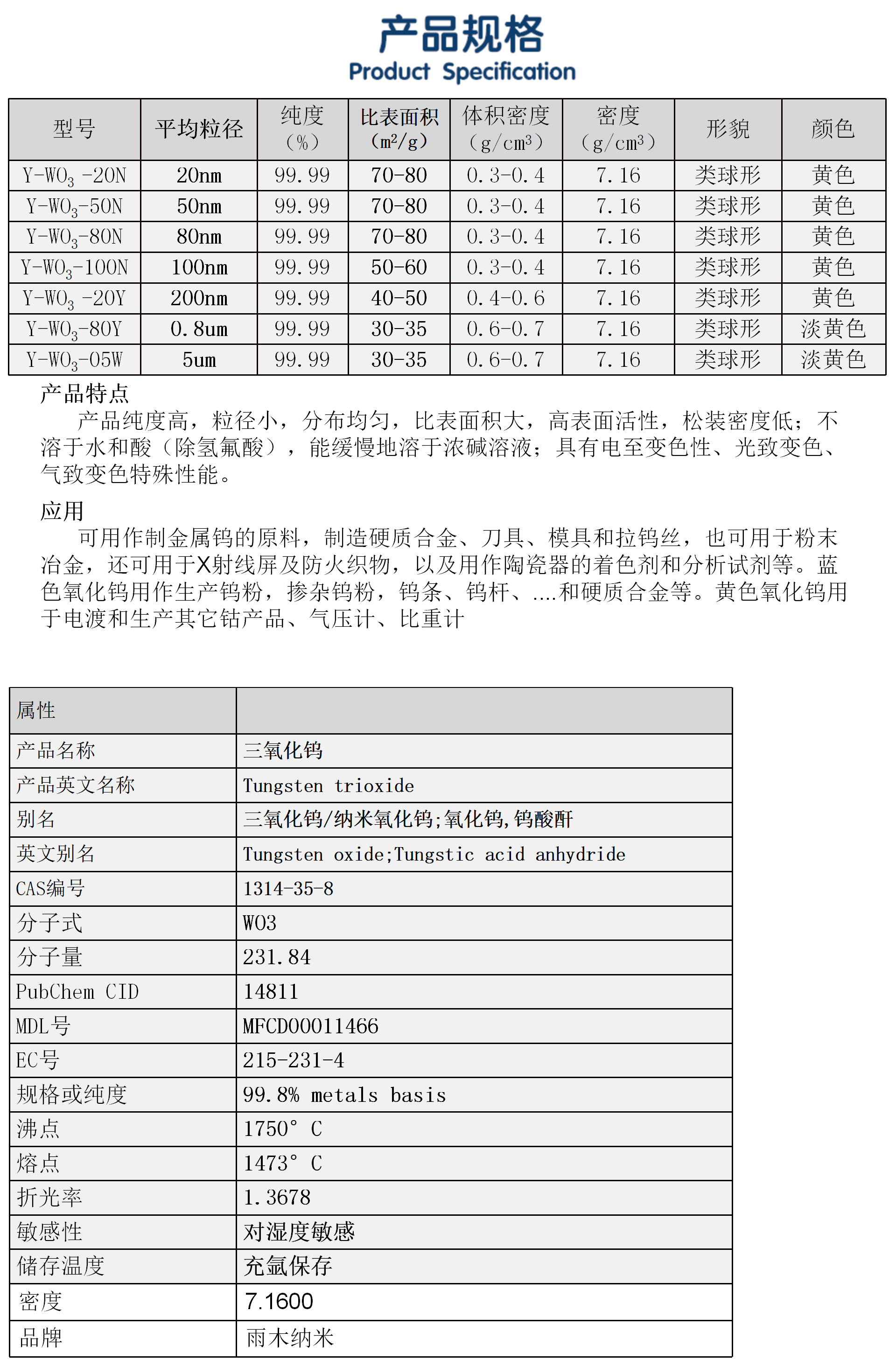 高纯黄钨粉 氧化钨粉末 微米纳米三氧化钨 WO3钨酸酐cas1314-35-8
