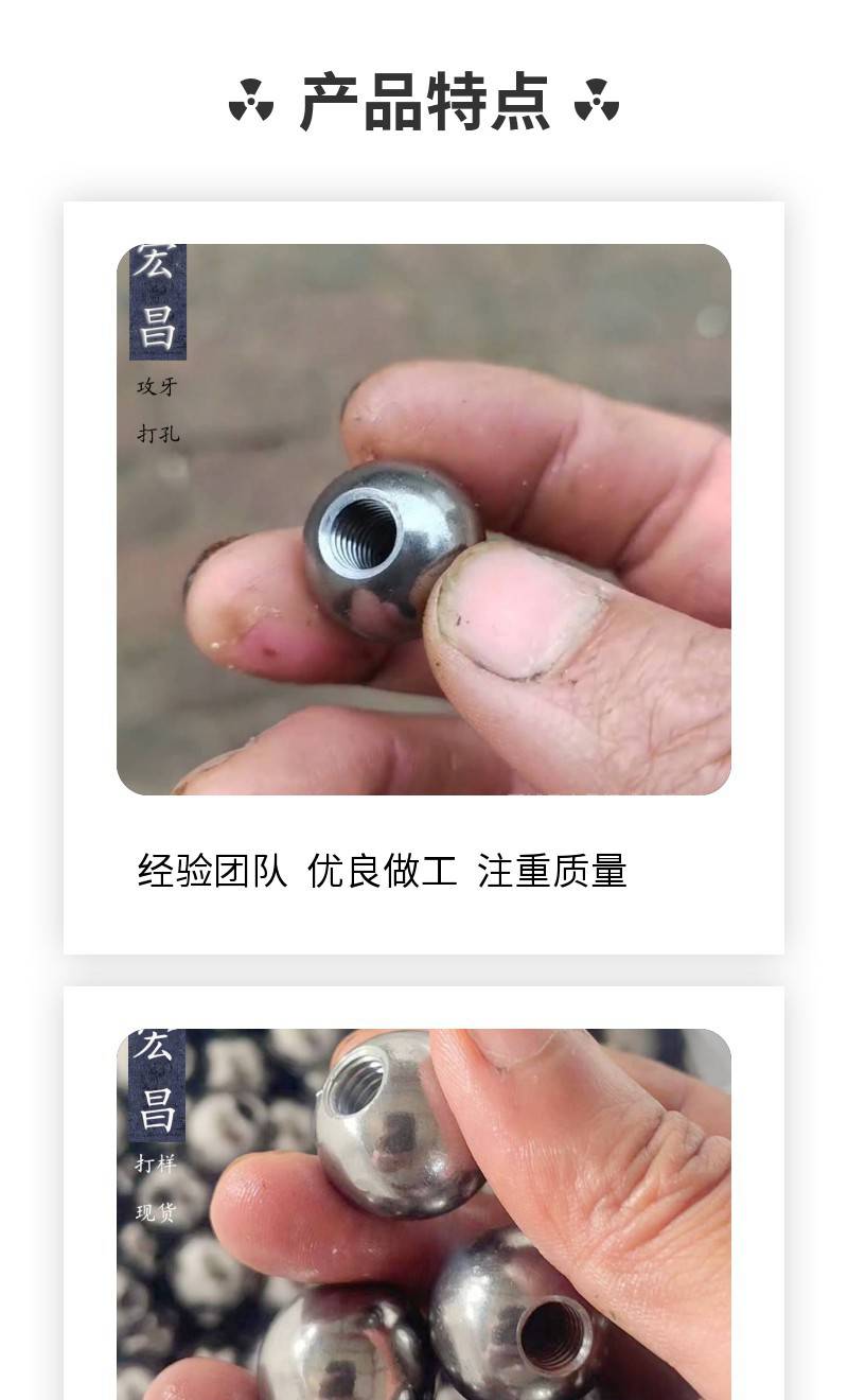 宏昌 带孔钢珠 碳钢铁球 带螺纹不锈钢球 可打孔攻牙 10mm 12mm 16mm 20mm